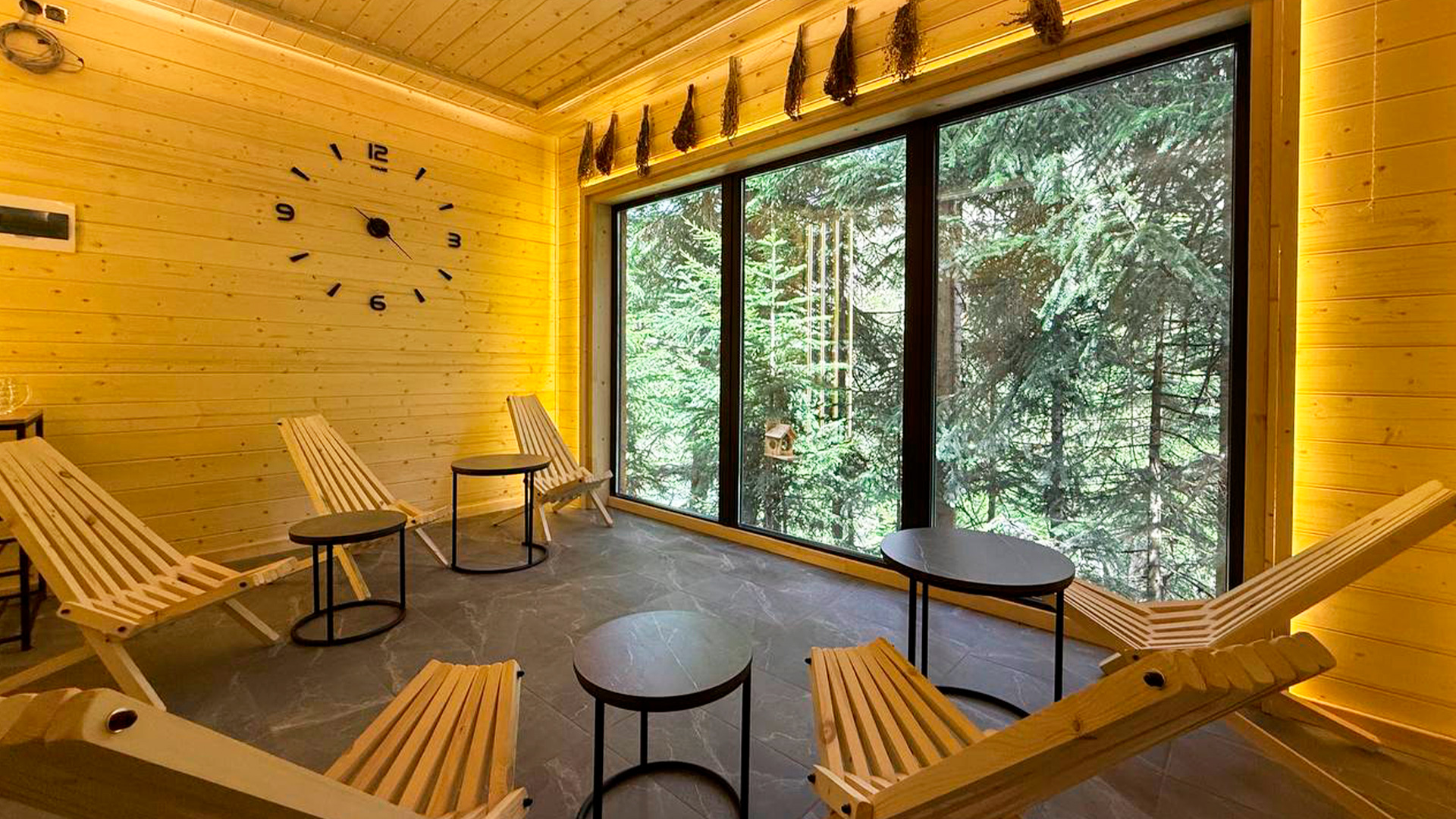 Если отдых с баней – то только в единении с природой. Панорамные окна с видом на лес и реку в горах – фантастическое решение: забронировать на трехчасовой сеанс шикарную баню у реки в лесу лучше, чем просто дом с бассейном, аренда которого может ударить по бюджету. Назначьте себе отдых в лесу с бассейном на комфортное для вас время, пригласите тех, с кем хотите разделить сеанс погружения в банные процедуры в окружении древнего леса, с ароматным чаем и бассейном. Отличная идея отдыха в паре или с ребенком.