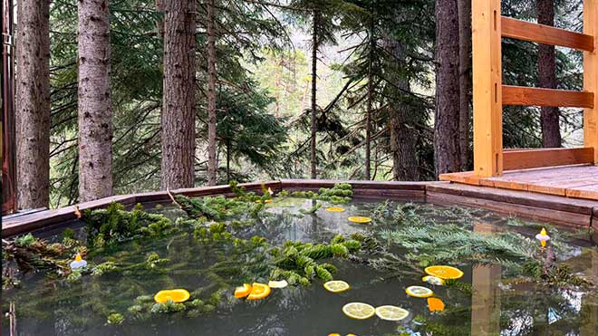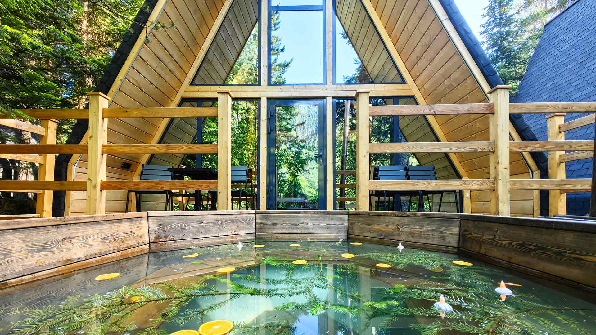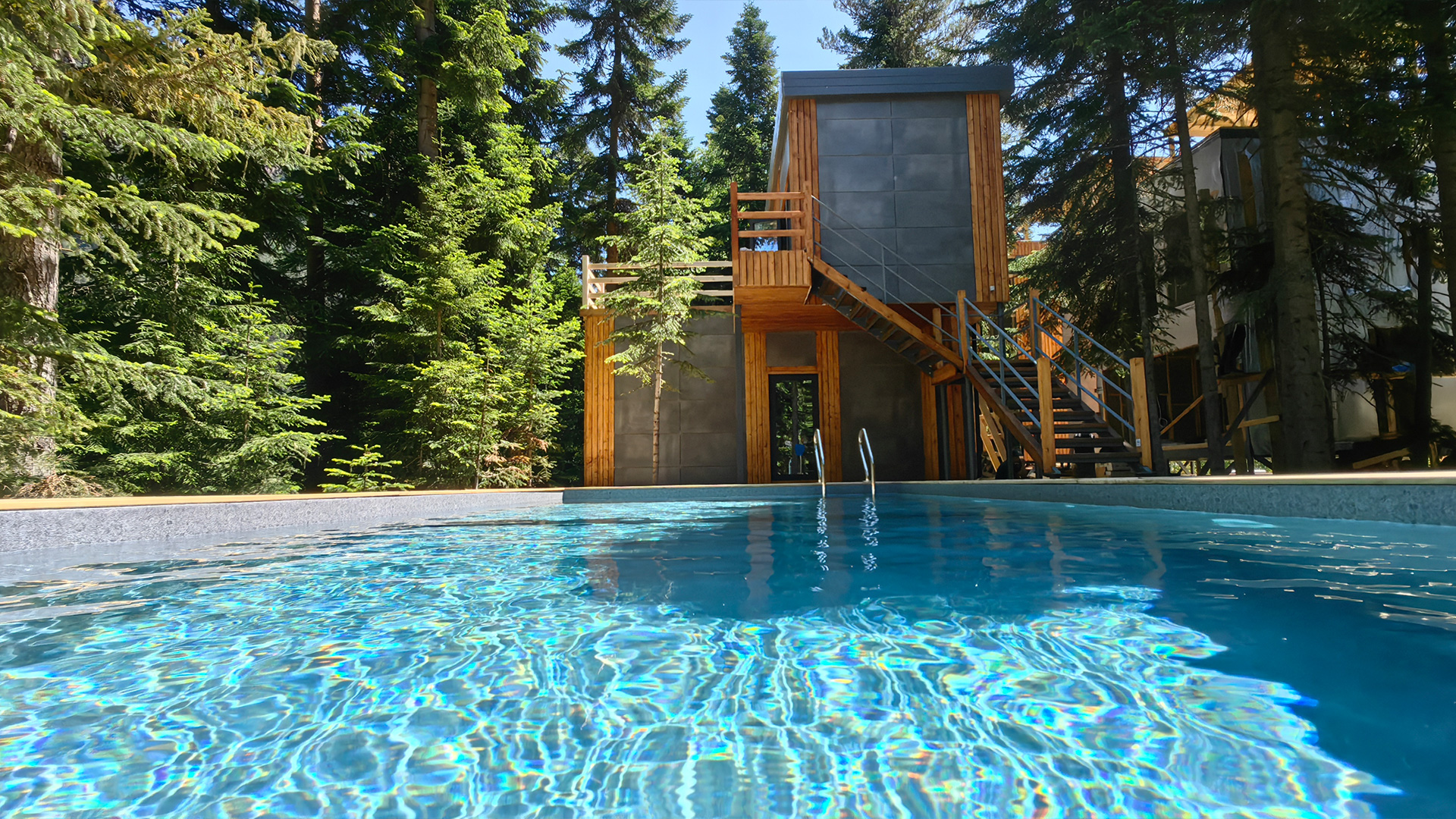 Отдых с бассейном и баней в лесу в горах – что может быть лучше этого? Не пора ли позаботиться о себе? Звенящий чистый воздух, напитанный целебным лесным ароматом, водные процедуры наедине с природой – здесь идеально все.